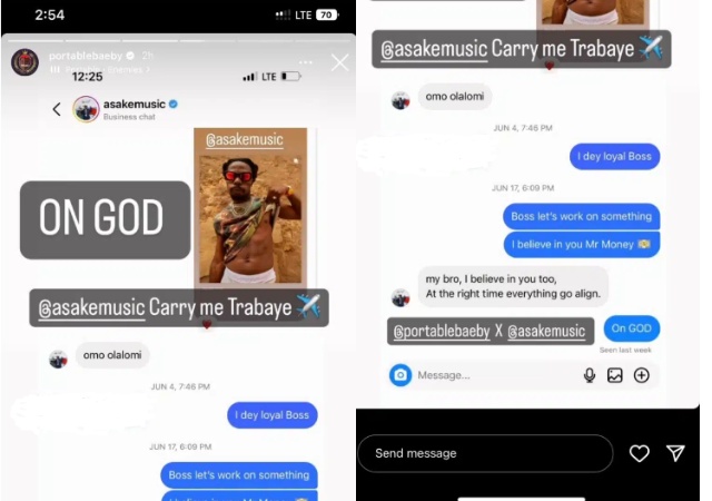 In his reply, Asake expressed his faith in Portable’s talent and assured him that the timing would align perfectly for their partnership.