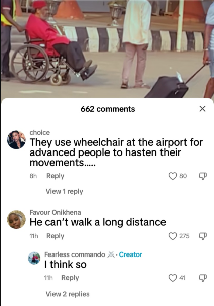 - Pete Edochie has caused a stir among his fans after a captivating video of him in a wheelchair at an airport was shared online.