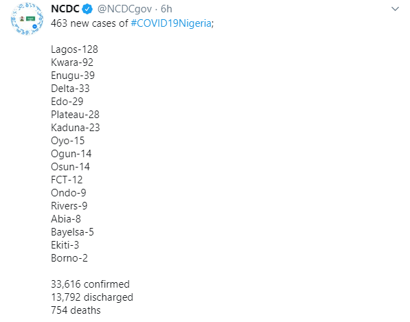 On Tuesday, July 14, 463 new COVID-19 cases were recorded in Nigeria, Nigeria Centre for Disease Control (NCDC) announced.