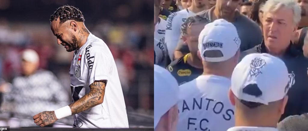 Tension escalated further when the club’s ultras confronted Neymar and his teammates at the CT Rei Pelé training ground. Neymar stood at the front as the squad listened to angry supporters, who warned them: “What’s happening on the pitch is not enough.”