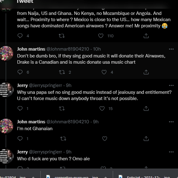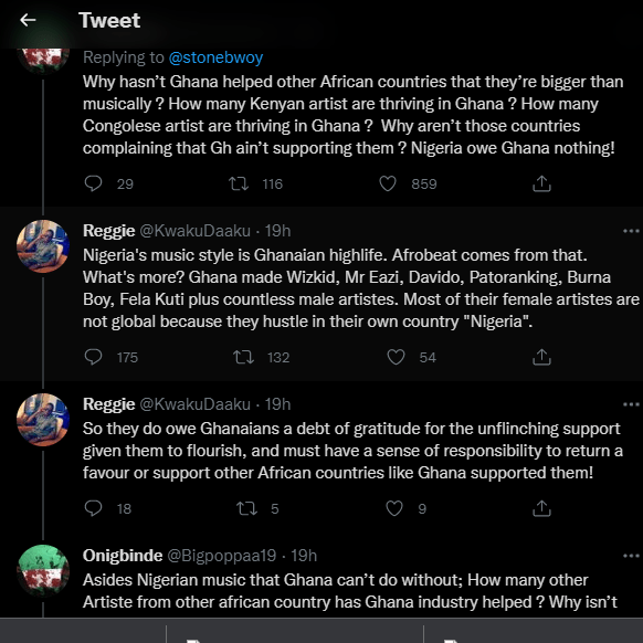 A Ghanaian fan also replied saying, “Nigeria’s music style is Ghanaian highlife. Afrobeat comes from that. What’s more?