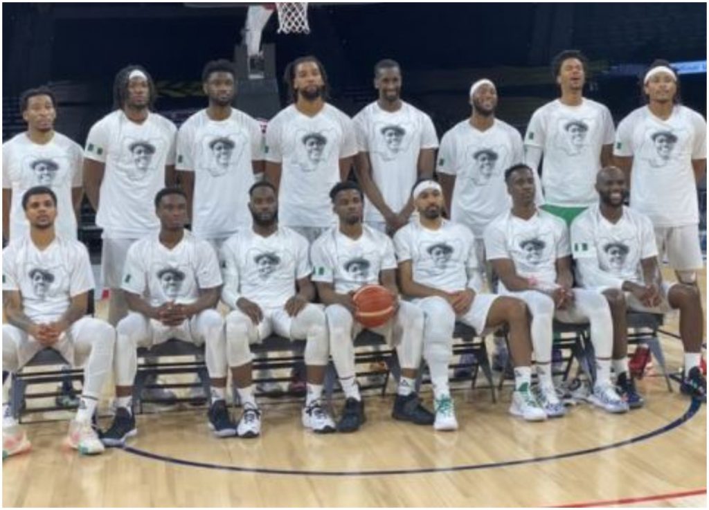 Nigeria Basketball players, D’Tigers honors late renowned rapper, singer and songwriter, Sound Sultan with their warm-up shirts.