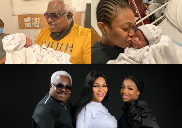 A Twitter user believing to be the first child of the couple took to her page to share photos of her family and the new arrival of their new baby. She disclosed that her family has been blessed with the newest addition after waiting for 18years.