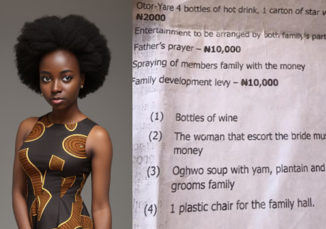 A Nigerian lady named Confidence Utomi posted on her page about the list her family gave to her husband when they came to ask for her hand in marriage.