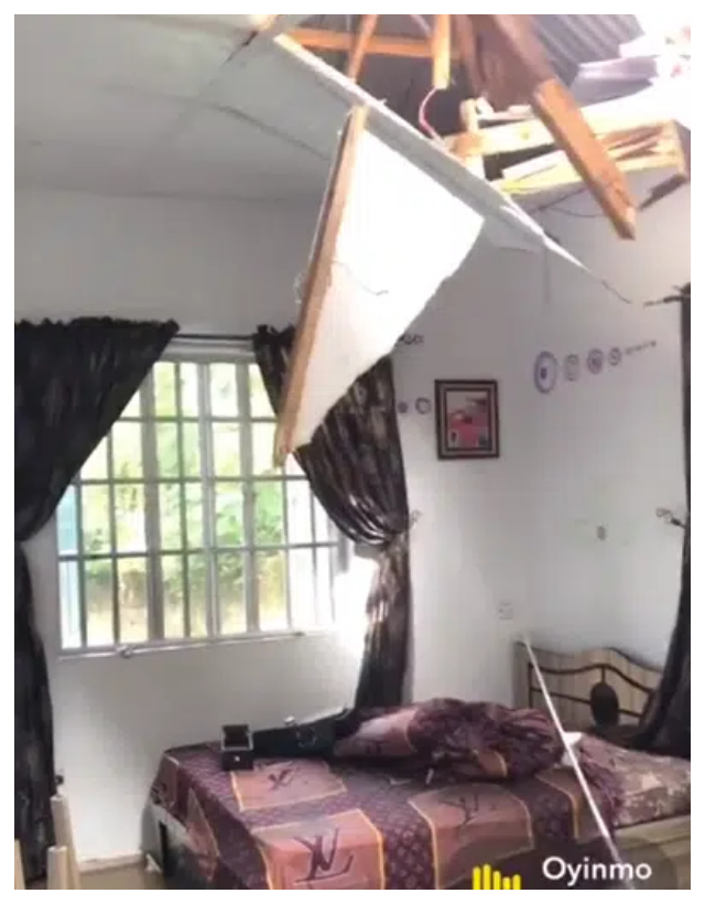 The startling video that @zion_cuttie posted showed the aftermath of the event and showed the water tank that had collapsed into his bedroom.