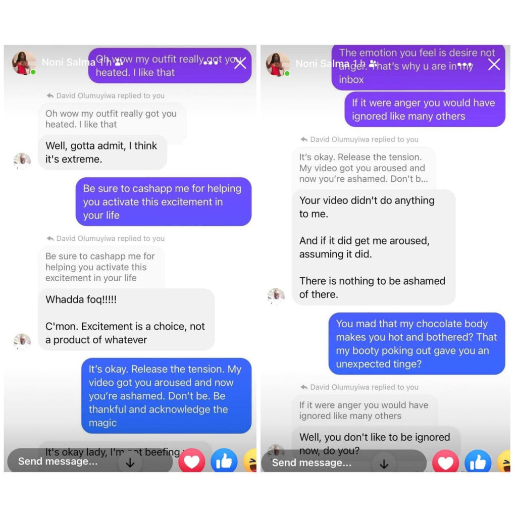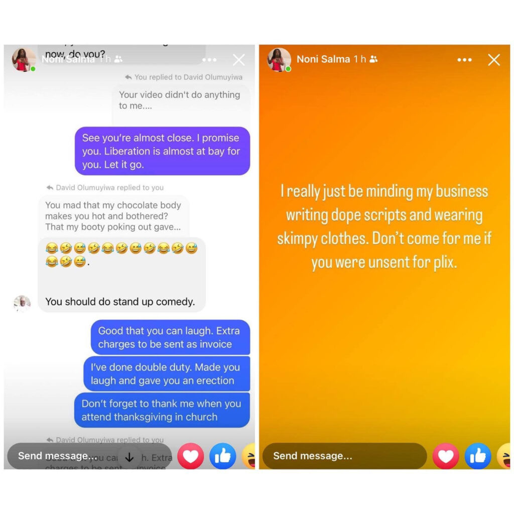 Nigerian transgender, Noni Salma formerly known as Habeeb Babatunde Lawal has clapped back at her followers querying her over her skimpy outfit.