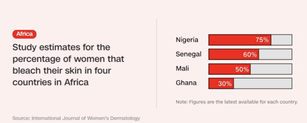Nigerian women have made history by topping the chart for skin bleaching in Africa.