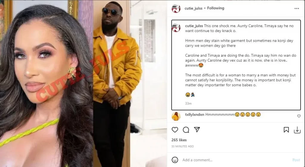 Reacting to the post, some social media users questioned Caroline Danjuma why she was pointing her hands at Tamar if there was nothing between her and Timaya.