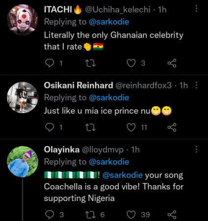 Following the game, Sarkodie, who adores Nigeria and has appeared on many Nigerian artists’ songs, tweeted “Naija on Heat” with a Nigerian flag and Eagles emoji.