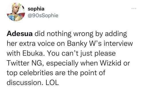 According to many, Adesua wasn’t dating Banky W when Wizkid got signed and left EME. They claim she has no right to contribute to something she wasn’t actively involved in.