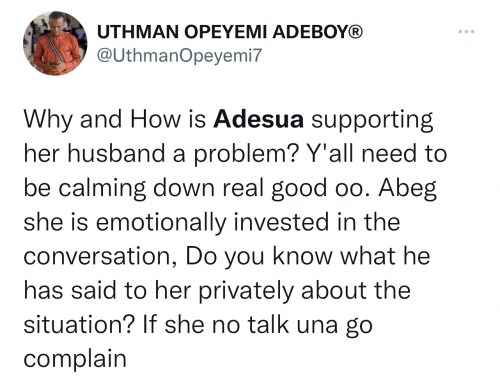 The more sensible ones reminded the first group that Banky W must have told her about it, but it is still a one-sided story with Adesua only hearing Banky W’s side.