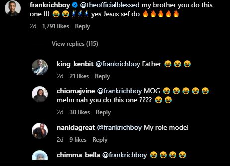 In a playful way, Frank Edward teased Mercy’s spouse in the comments area, saying that Pastor Blessed Uzochikwa was not the only one who God had a hand in Mercy Chinwo’s pregnancy.