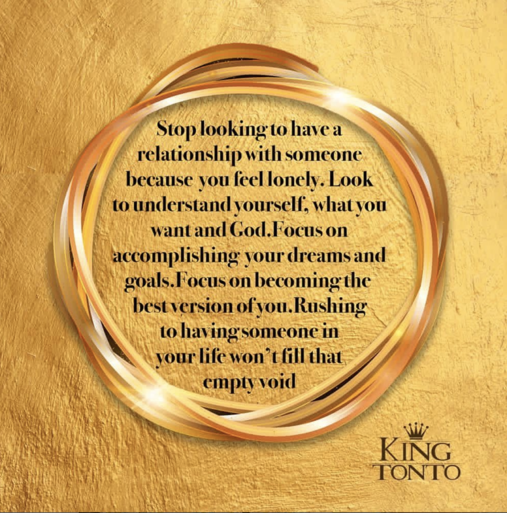 According to her, before you go into a relationship, you should determine whether you and the person you would be dating are attached to each and you should not go into a relationship just because you are lonely.