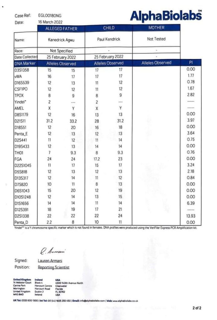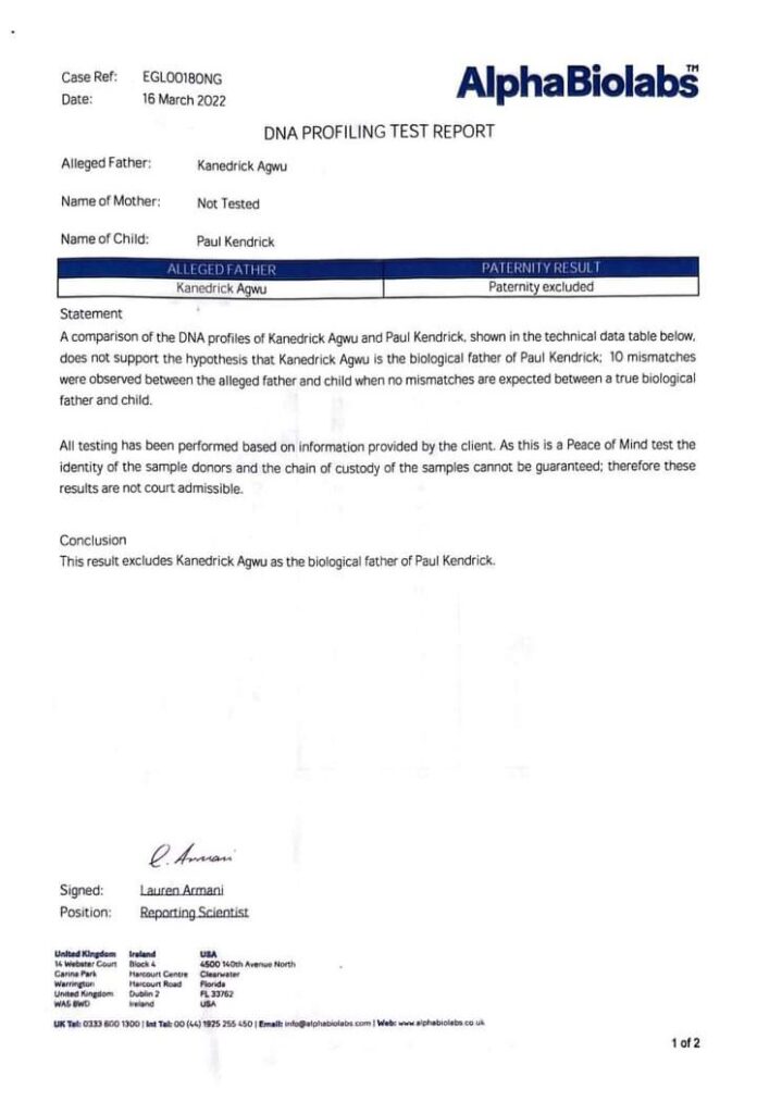 He wrote: “This is to inform the general public that I, Kanedrick Kingsley Agwu popularly known as Fada Kane is not the biological father of Anthonia Duke and Paul Duke as alleged by one Miss MarryAnn Efa Duke.