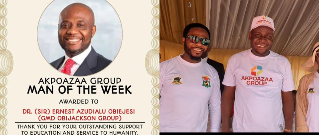 Akpoazaa Group is pleased to announce Dr. (Sir) Ernest Azudialu Obiejesi, Group Managing Director of Obijackson Group, as the first recipient of its prestigious Man of the Week Recognition Award; an honour instituted to celebrate individuals and organisations making remarkable contributions to education, healthcare, youth empowerment, industrial growth and the overall development of humanity.