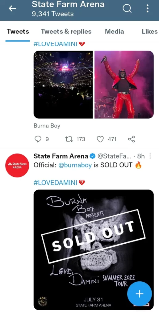 “@burnaboygram has done what American rappers can’t do in America. He sold out a 21k capacity @StateFarmArena. He becomes the first African Artiste to sell out all his shows in America. That’s history right there”.