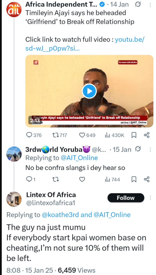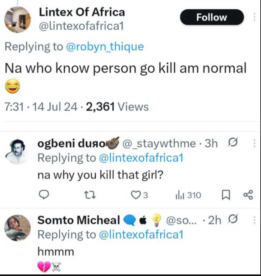 - Nigerians unearthed disturbing tweets where he wrote about killing and commented on another murder case, raising fresh outrage over the tragedy.