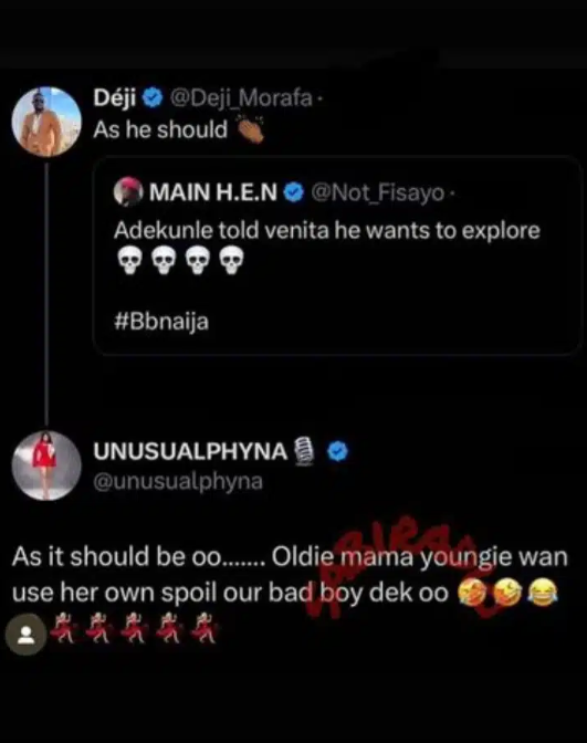 She age shamed Venita in a recent tweet, implying that the older woman wanted to corrupt Adekunle by sleeping with him.