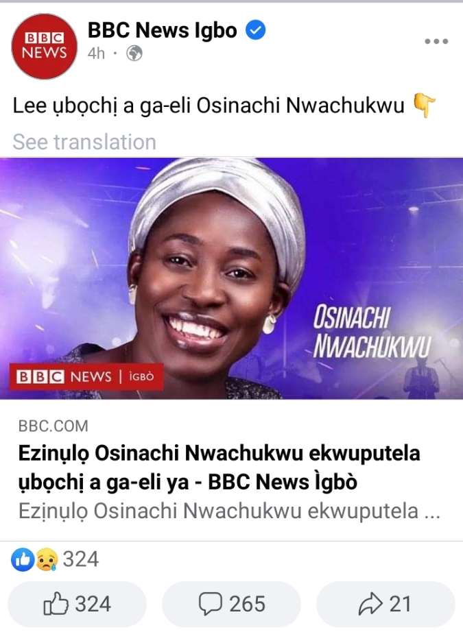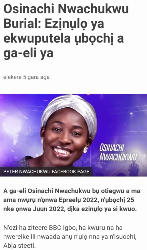In an interview with BBC News Igbo, the family said Osinachi will be buried on June 25, 2022.