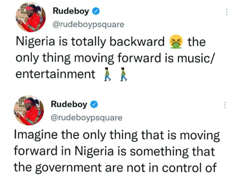 According to Paul Okoye who shared his views on Twitter, Nigeria is totally backward and the only thing that is moving forward in Nigeria is music and entertainment and it is something the government is not in control of.