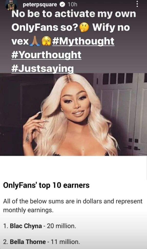 “No be to activate my own OnlyFans so? Wify no vexA #Mythought #Yourthought # Justsaying”