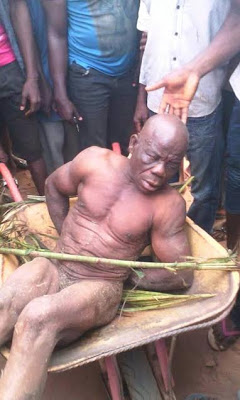 According to reports, the man pictured above was caught in Ehime Mbano, Imo state while trying to plant charm in another man’s compound. He was stripped unclad by youths .Below is what Iwunze wrote…