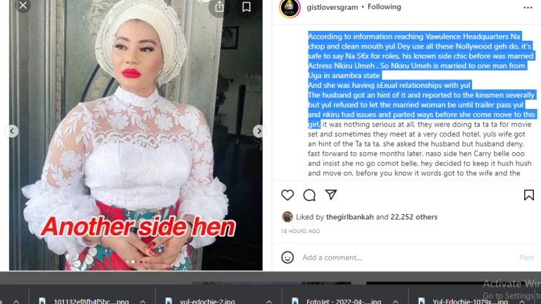 “According to information reaching Vawulence Headquarters Na chop and clean mouth yul Dey use all these Nollywood geh do, it’s safe to say Na S€x for roles, his known side chic before was married Actress Nkiru Umeh, So Nkiru Umeh is married to one man from Uga in Anambra state