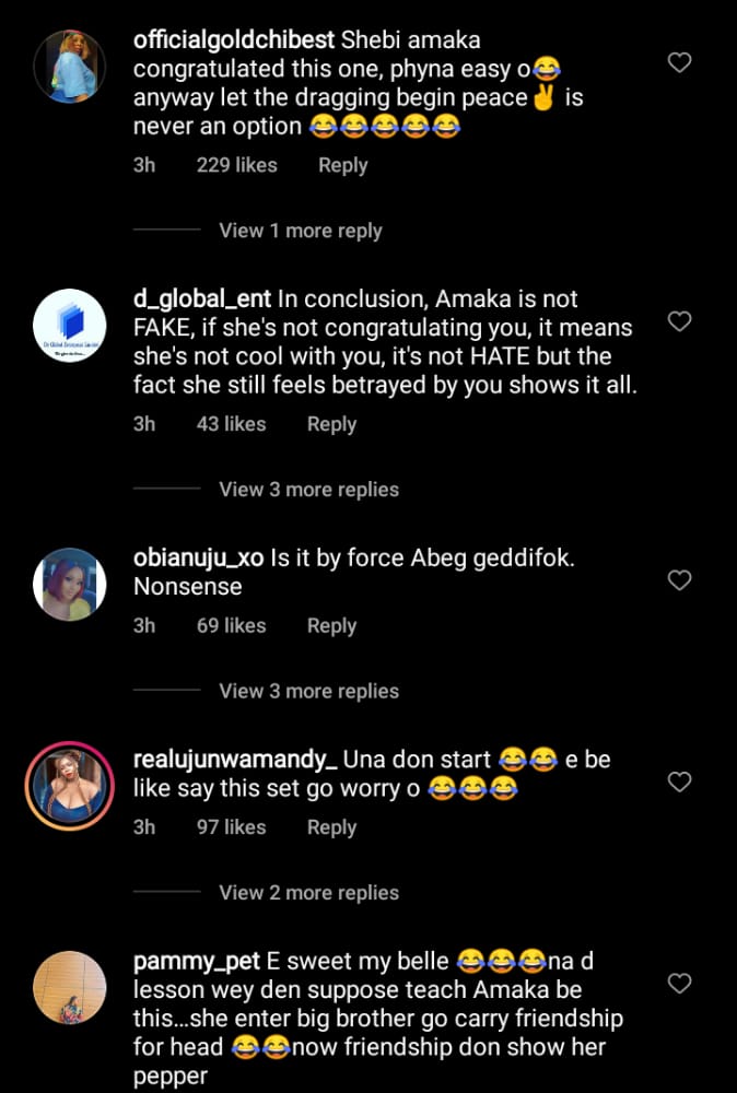 As congratulatory messages continue to fall in for Phyna, fans are curious about the state of her friendship with Amaka.