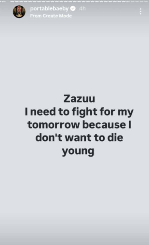 He warned her publicly, claiming she doesn’t know he has tied her down spiritually. Portable added that even 2Baba hasn’t faced what he’s going through, saying he’s “fighting for his life” and doesn’t want to die young.