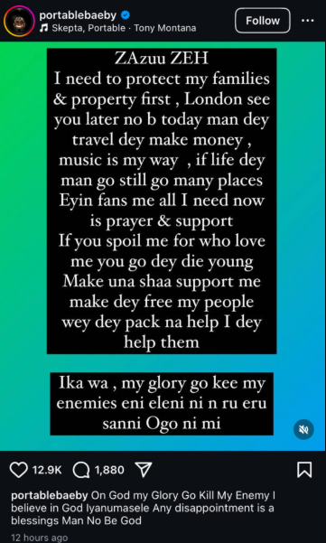 In the midst of the rising controversy, Portable has resorted to social media to ask for his supporters’ prayers.