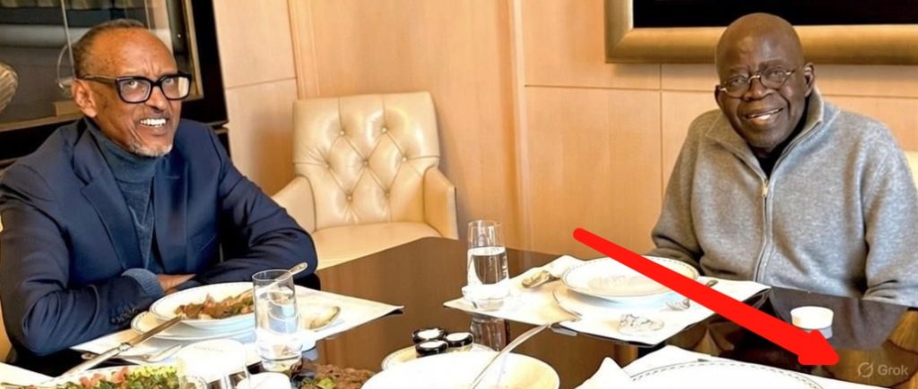 A photograph documenting a high-level meeting between President Bola Tinubu and Rwandan President Paul Kagame in Paris has triggered a heated debate on social media after eagle-eyed users spotted a Grok watermark on the image.