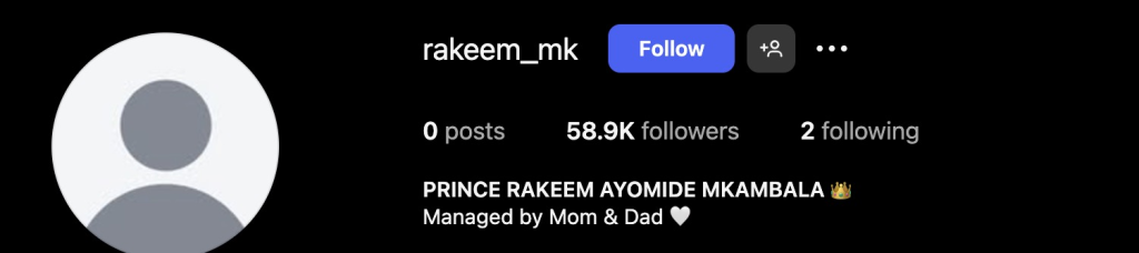 Despite the criticism, baby Rakeem is already making headlines as one of the fastest-growing celebrity Instagram accounts in Nigeria.