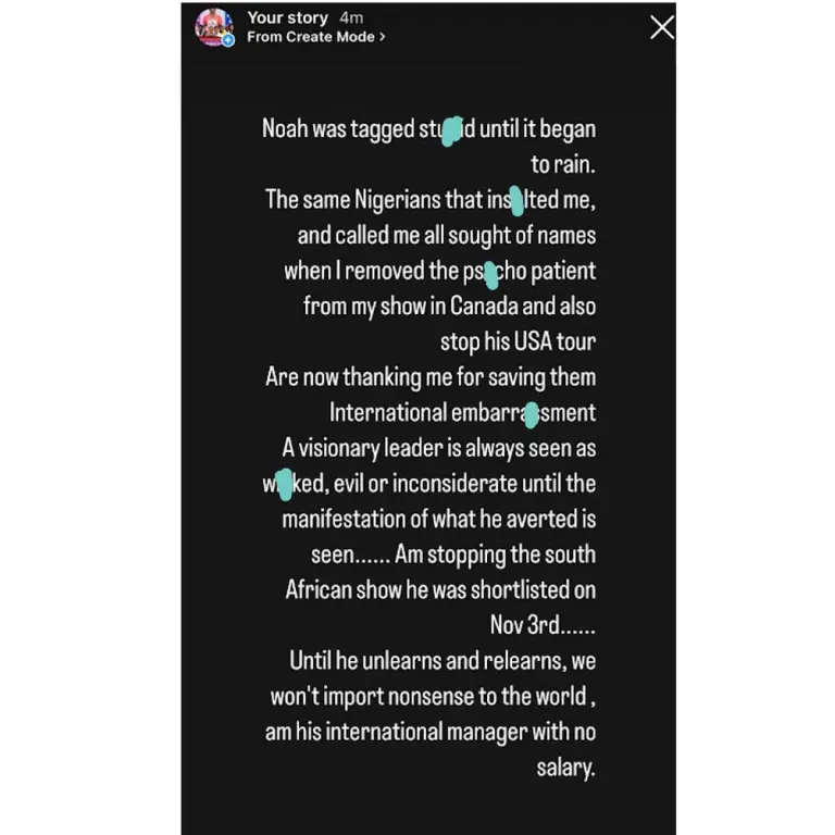 The talent manager stressed that until the Zazuu star unlearns and relearns some things about life, such actions would continue to be taken against him.