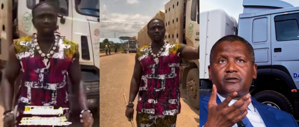 Social media activist Martins Vincent Otse, popularly known as VeryDarkMan (VDM), on Monday led a protest in Auchi, Edo State, blocking Dangote trucks from operating in the area until the company takes responsibility for accident victims.