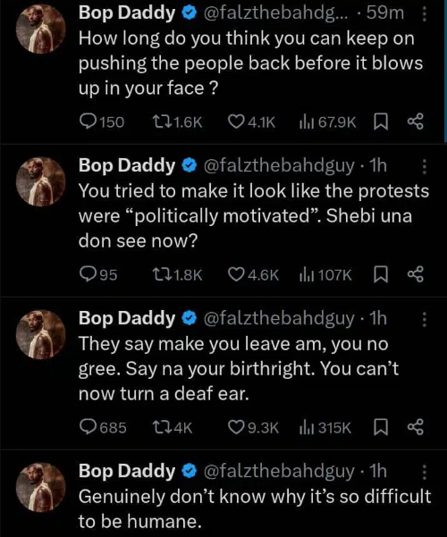 Falz, a Nigerian artist and rapper, has finally responded to the recent nationwide rallies against bad governance.