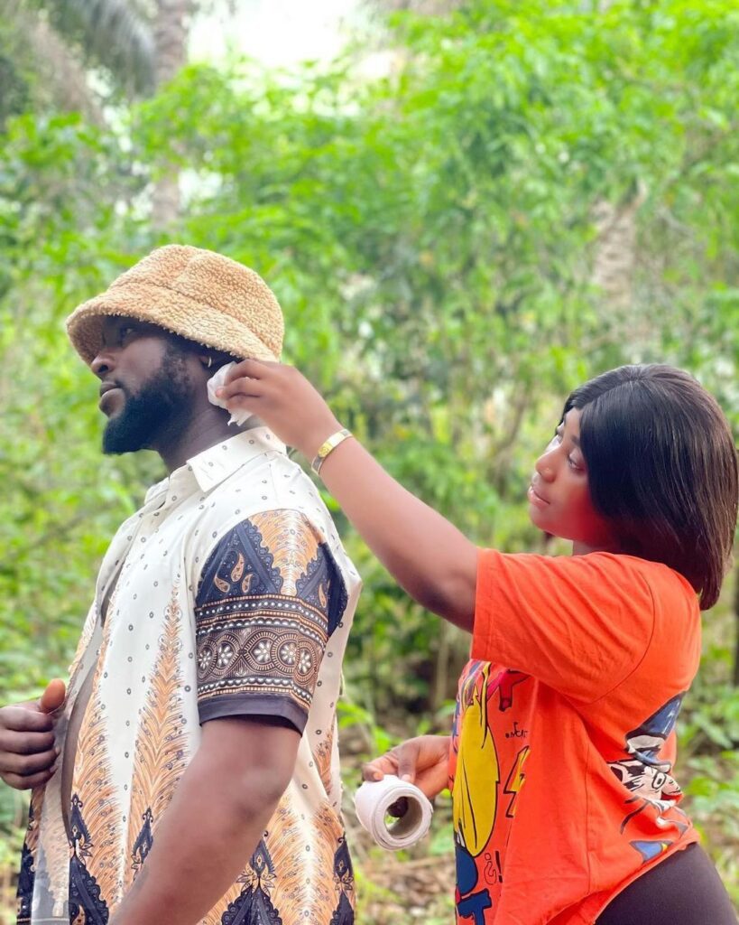 He recreated the photos which showed a lady wiping Davido’s face and head with tissue paper.