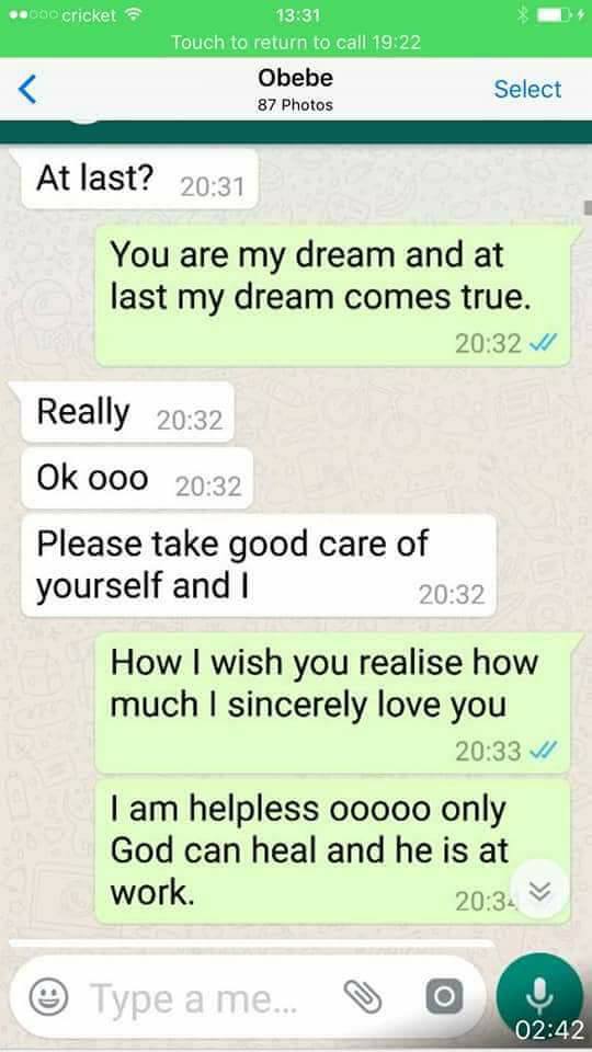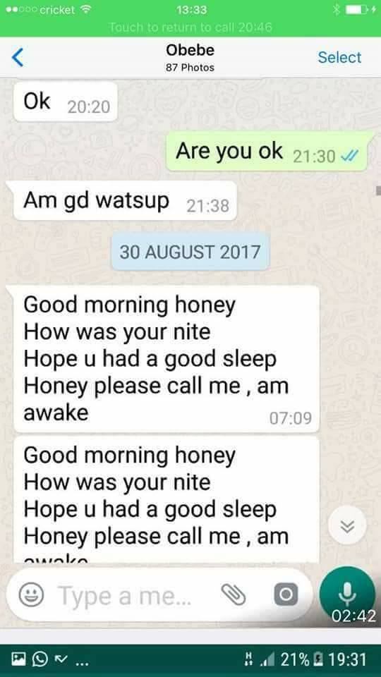 Read Full Romantic Whatsapp Chat between the Woman That Committed Suicide at 3rd Mainland Bridge and Her Boyfriend When Their Love Was Still Very Fresh [photos] June 13, 2018 Gist Lovers Extra 0 click next page below to continue reading; 1 2 3 4 suicide