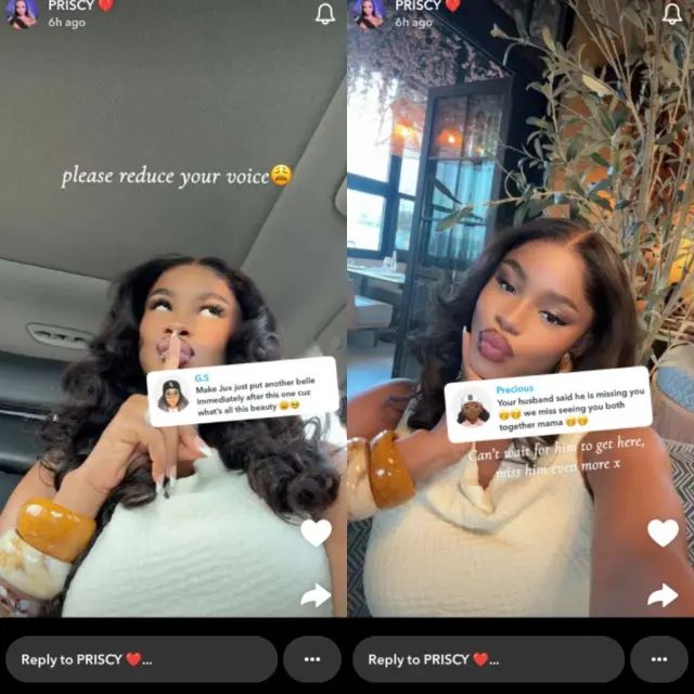 Priscilla Ojo, the daughter of popular Nollywood actress Iyabo Ojo, recently caught the attention of fans with her latest social media post, sparking playful reactions online. The young influencer, who is currently expecting her first child with Tanzanian singer Juma Jux, shared a radiant video on Snapchat, flaunting her effortless pregnancy glow.
