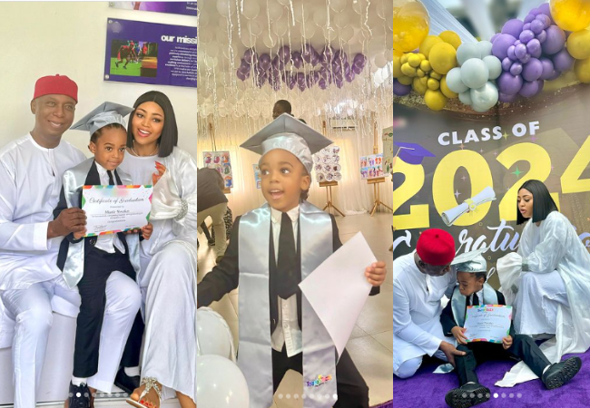 Regina Daniels and her husband, Ned Nwoko, are overjoyed as they celebrate their first child’s graduation from school.