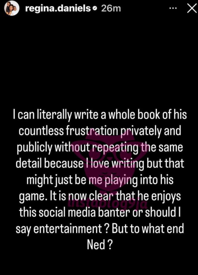 Regina concluded her statement by directly addressing Ned Nwoko, questioning his motives and asking what he hoped to gain from the ongoing situation.