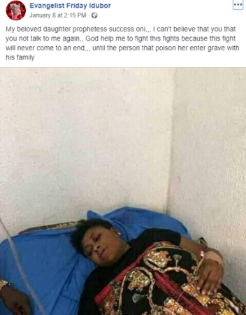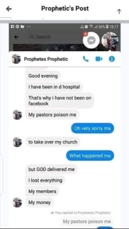 A message. alleged to have been sent by the Prophetess before her death, shows her revealing she’s been admitted to the hospital, and she accused her pastors of poisoning her.