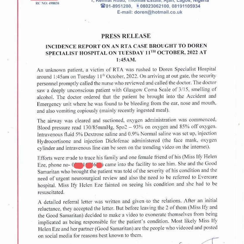According to the hospital, it was the good samaritan who brought him to the hospital as well as Rico’s female friend who was contacted that filmed him and shared the video online ”for reasons best known to them”