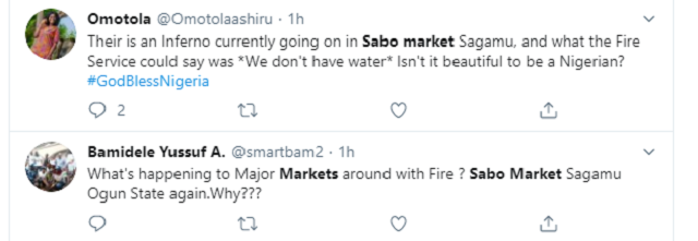 Sabo market in Sagamu area of Ogun State is currently on fire according to some social media users.