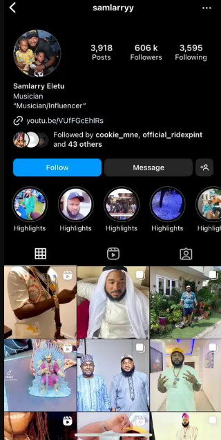 Sam temporarily reactivated his Instagram page on September 24th, exactly 12 days after Mohbad’s death.