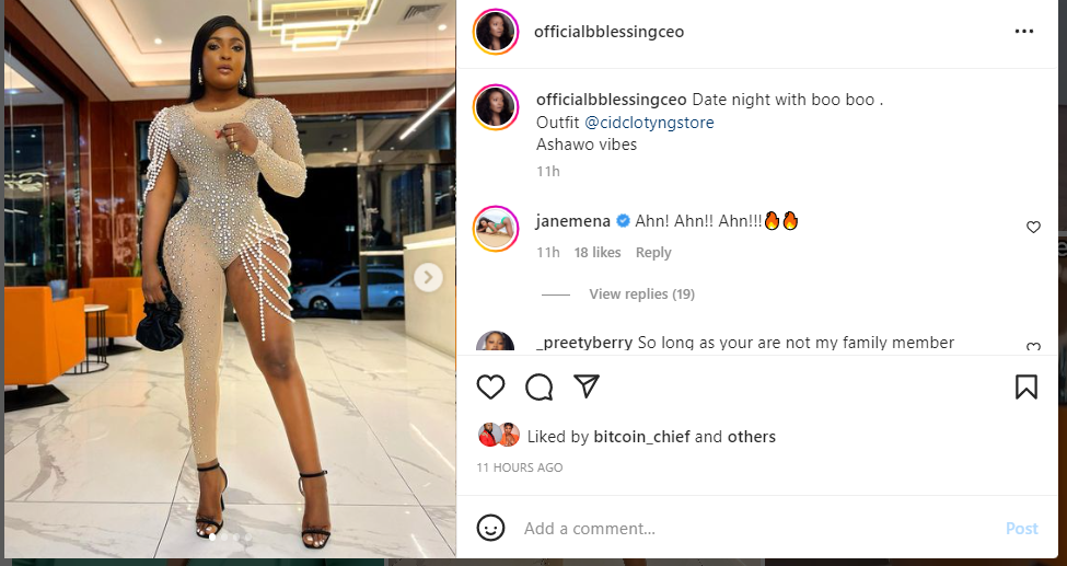 - Blessing CEO took to her Instagram page to post pictures with an interesting outfit that has got fans talking. She indicated she was going out with her boo in that outfit.