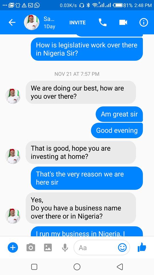 Nigerians have been warned following this method used by internet fraudsters to dupe unsuspecting victims. Some scammers who decided to take their game to another level are now using fake Facebook profiles pretending to be Senator Ifeanyi Araraume and Senator Samdaddy Anyanwu from Imo state, in order to defraud their “constituents”.