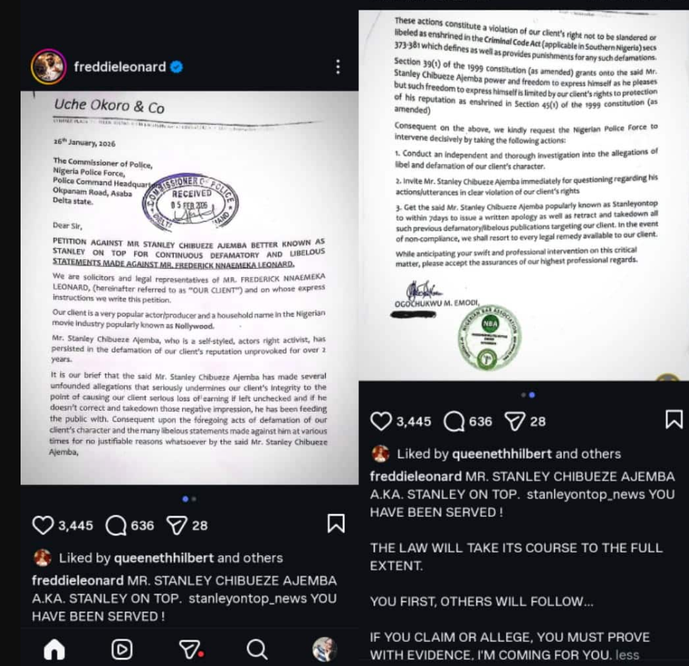 He wrote: “MR. STANLEY CHIBUEZE AJEMBA A.KA. STANLEY ON TOP. stanleyontop_news YOU HAVE BEEN SERVED!