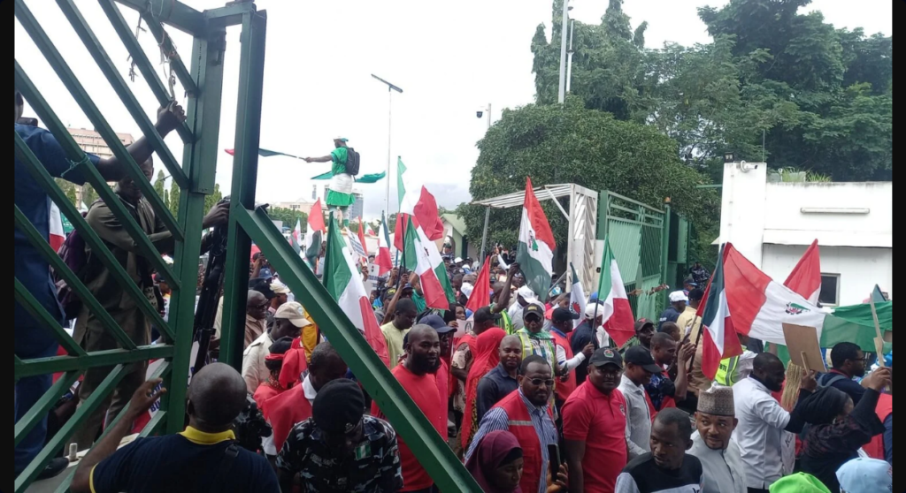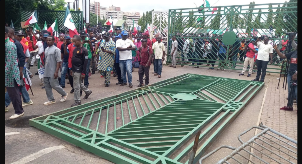 Angry protesters on Wednesday, August 2nd pulled down the gate of the National Assembly in the Federal Capital Territory.