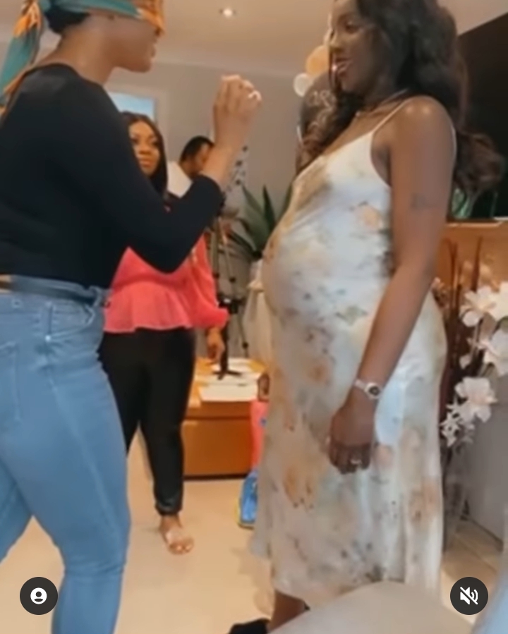 In the video, Seyi Shay was seen with a protruding stomach dancing excitedly in a TikTok video.