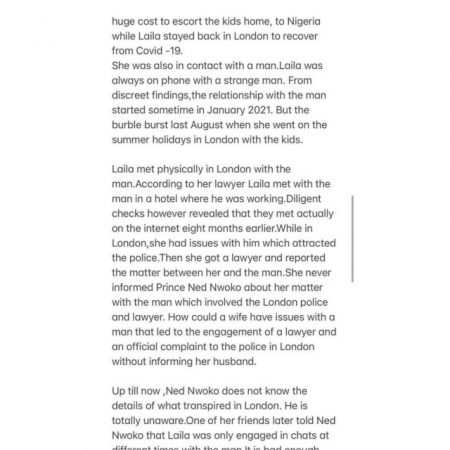She was always on phone with a strange man. From discreet findings, the relationship with the man started sometime in January 2021. But the bubble burst last August when she went on the summer holidays in London with the kids”, Ned wrote.